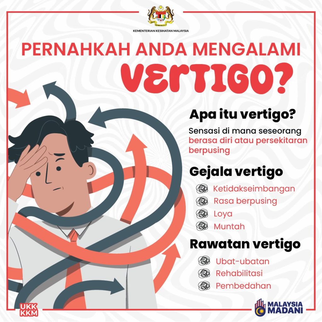Ketika diserang vertigo, rehatkan badan dan elakkan bangun secara mengejut. Pergerakan mengejut boleh buat keadaan lebih teruk.