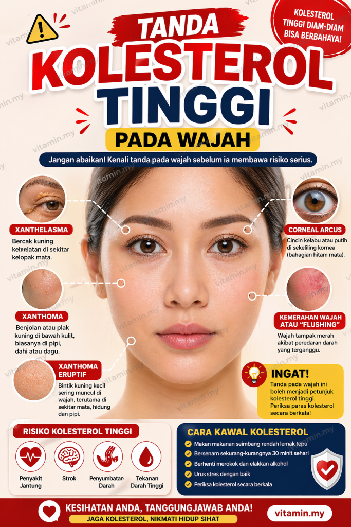 Dalam artikel ini, kita akan kupas tanda kolesterol tinggi pada wajah, punca, risiko, dan cara kawal secara semulajadi.