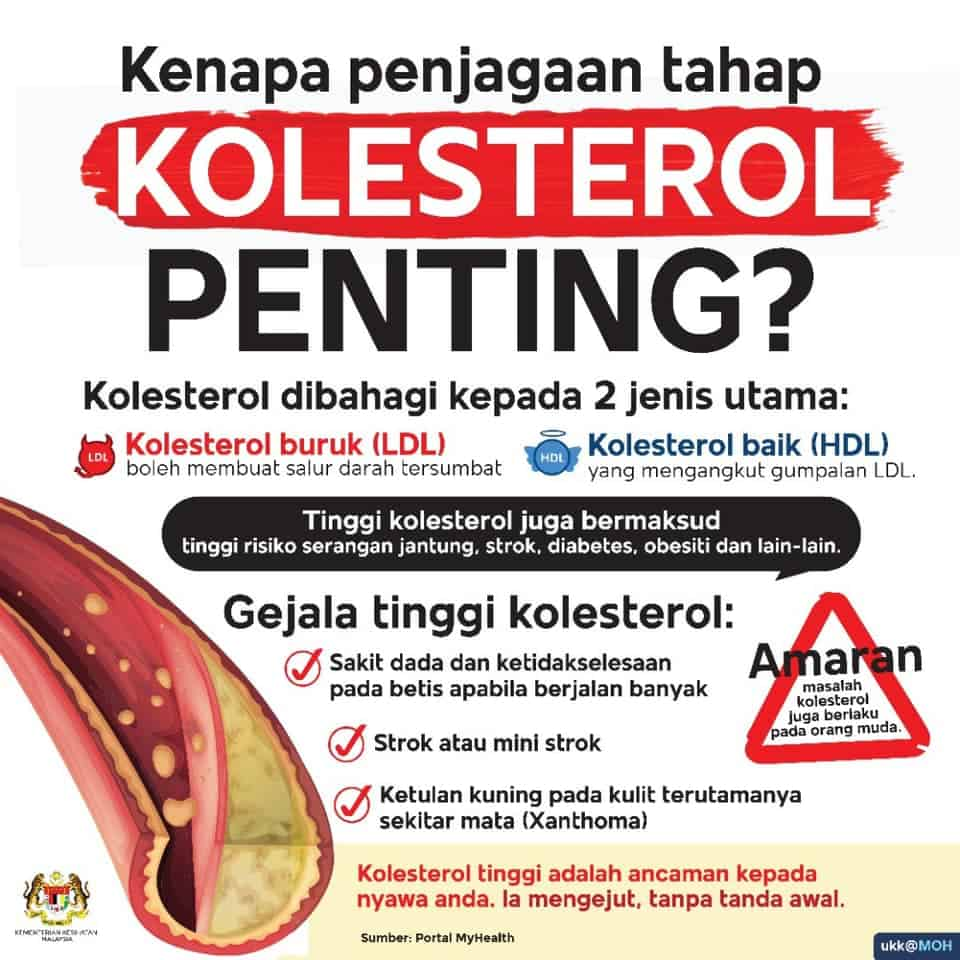 Kolesterol ialah sejenis lemak dalam darah yang diperlukan oleh tubuh. Namun, apabila paras kolesterol “jahat” (LDL) terlalu tinggi, ia boleh menyebabkan pengumpulan lemak dalam salur darah.