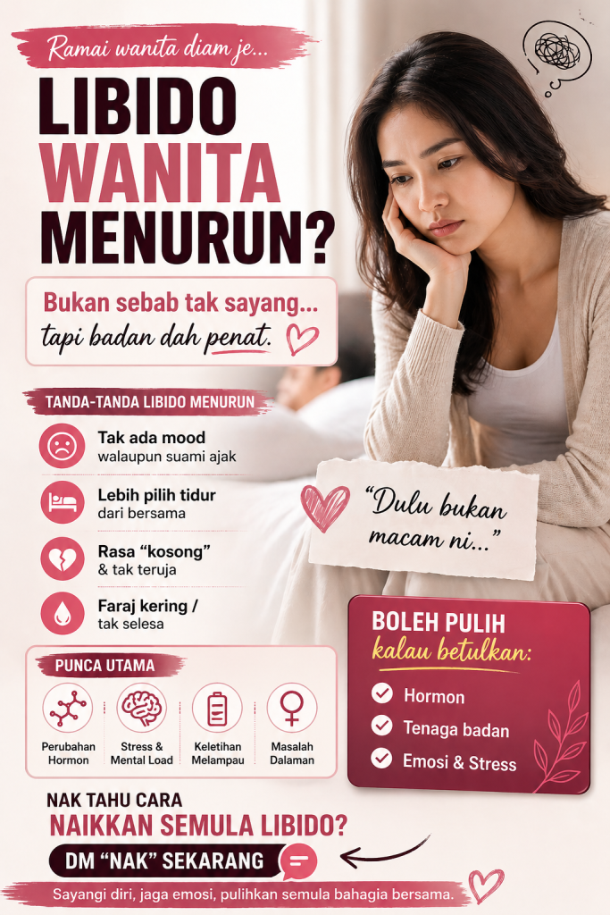 Dalam artikel ini, kita akan kupas punca sebenar libido wanita menurun, tanda-tanda yang sering diabaikan, dan cara untuk pulihkannya secara semulajadi.
