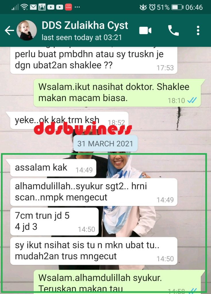 2. Perkongsian Customer yang ada cyst 4cm dan ambil set VIVIX, GLA & CARATOMAX