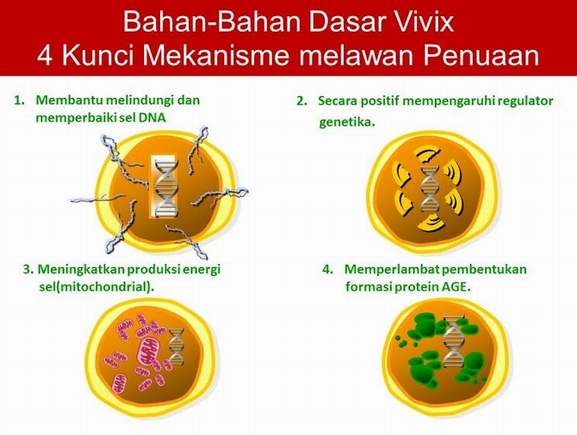ResV dan Vivix kaya dengan antioksidan polifenol, yang berfungsi melawan radikal bebas. Dengan sel yang lebih sihat, badan lebih cergas, organ berfungsi lebih baik, dan wajah juga tampak lebih muda.