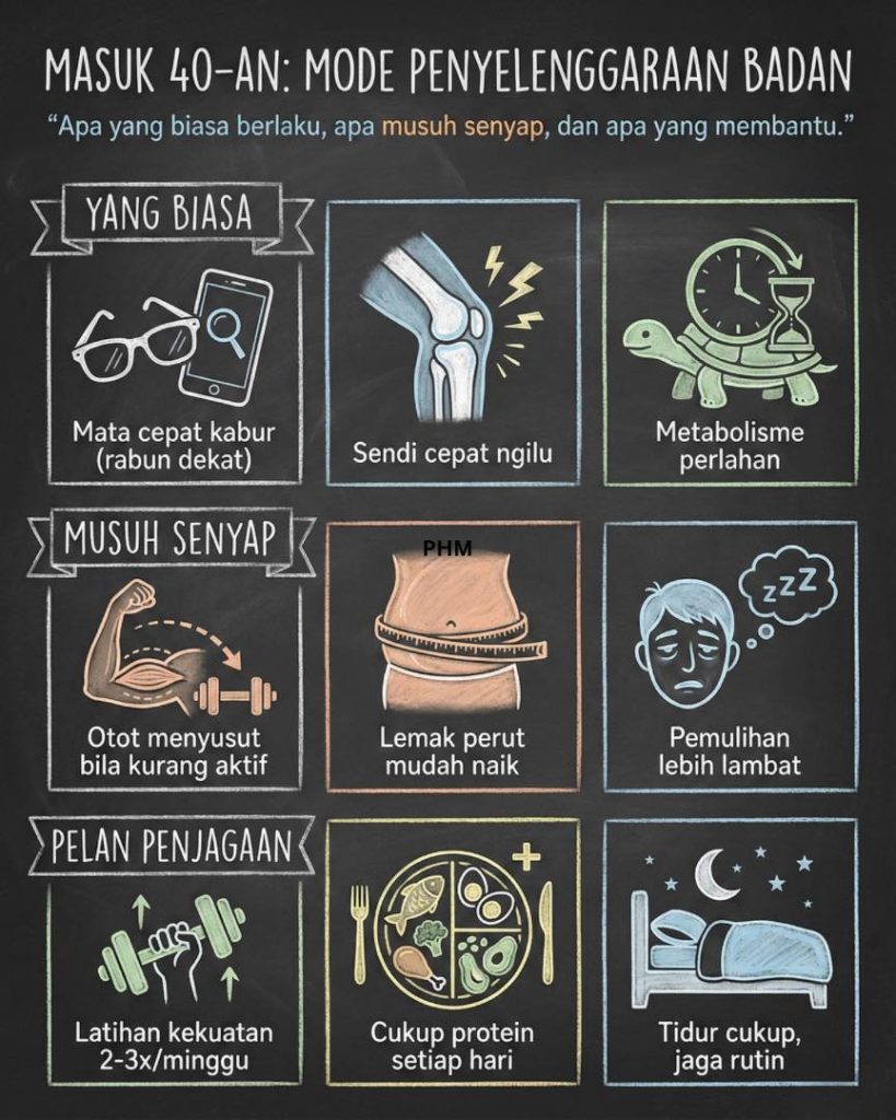 Untuk umur 40, set kurus perlu fokus kepada: